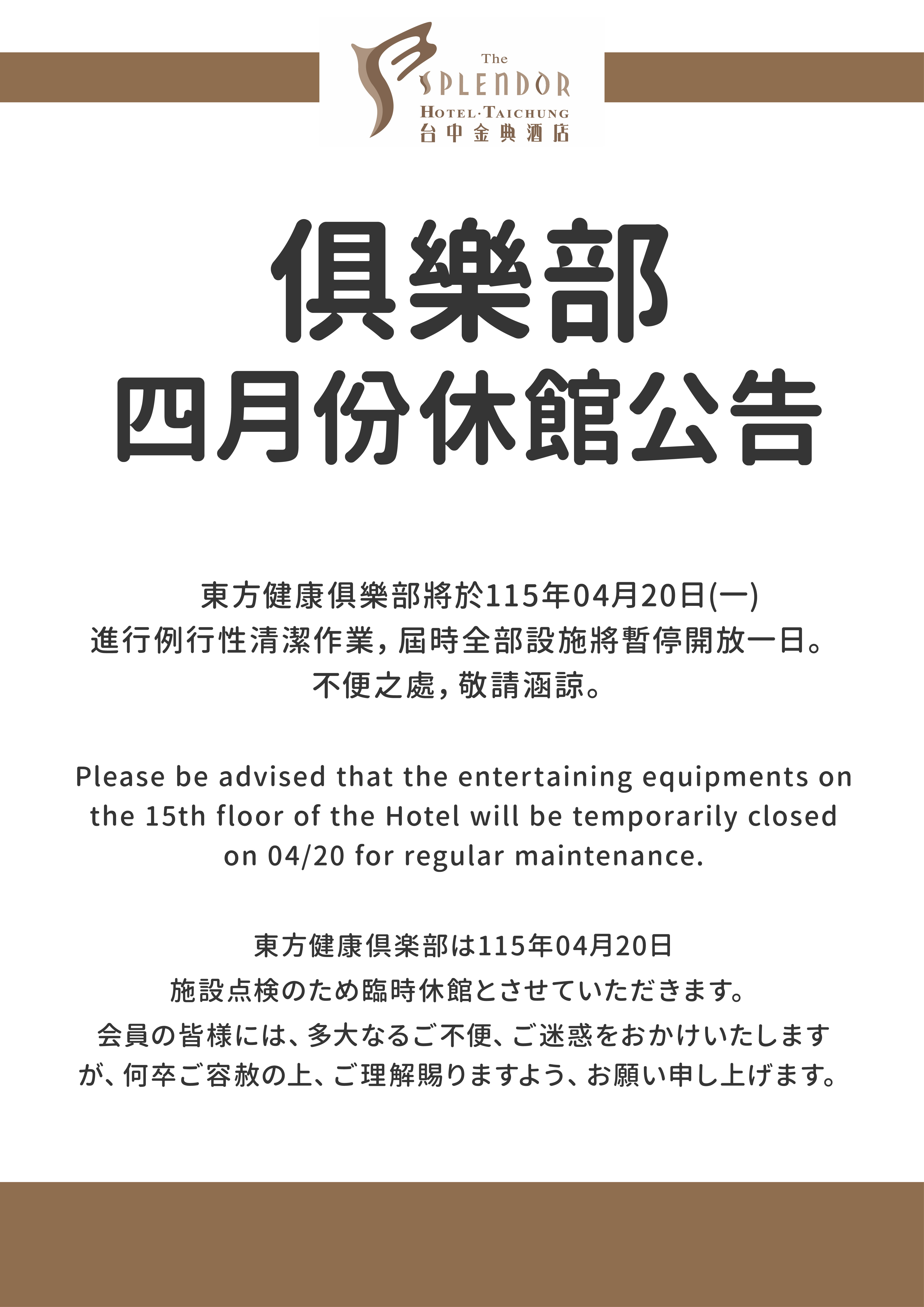 俱樂部-四月份休館公告