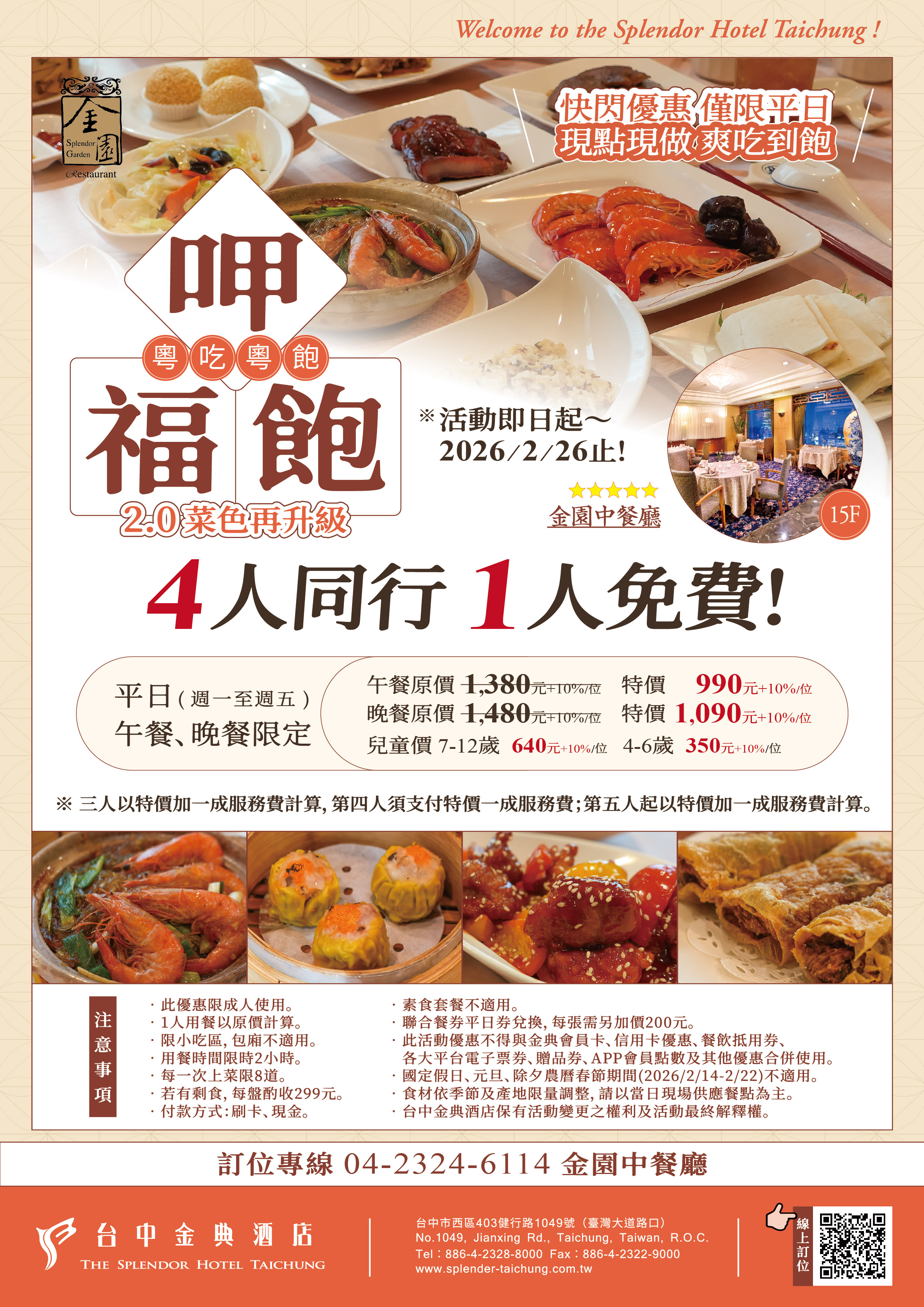 呷福飽 粤吃粤飽 快閃優惠僅限平日 4人同行1人免費