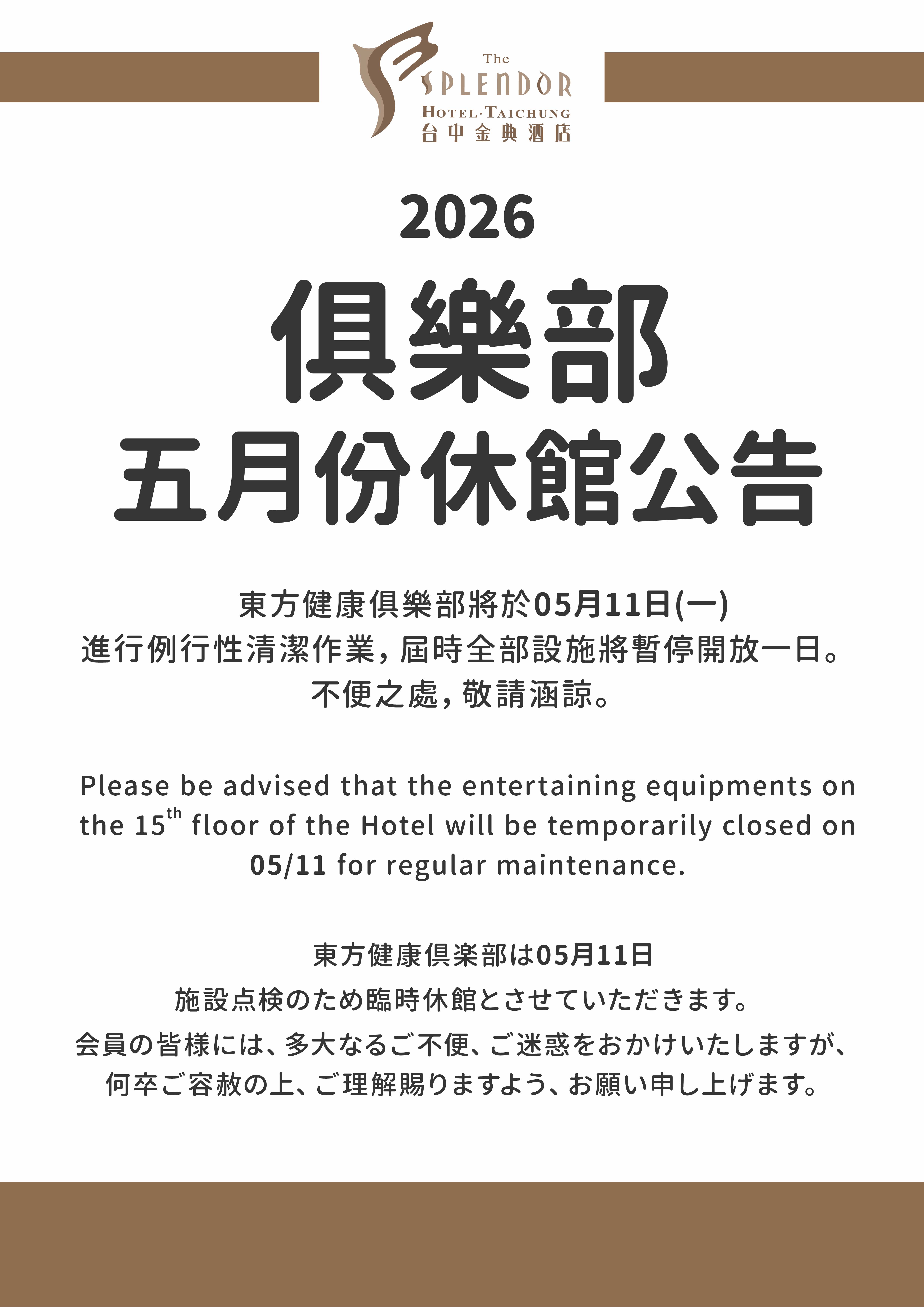 俱樂部-五月份休館公告